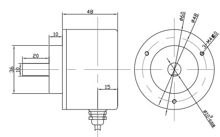 连接电缆: 1米屏蔽电缆径向侧出,其余长度可订货;或插座后出